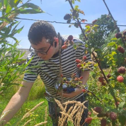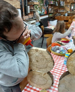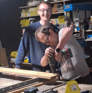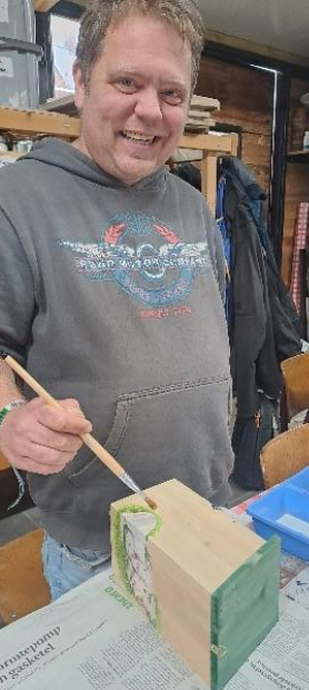 Giel en Emilio leiden ons verder naar het houtatelier. In het houtatelier maken Koen en de gasten zowat alles zelf: bakken voor groenten, houten structuren voor de tuin, en ook alle meubels en onderdelen voor de zomerbar zijn hier gemaakt! Waar keramiek de passie is van Hilde, is dit volledig Koen zijn ding. De gasten leren hier alle kneepjes van het vak van Koen en zien hem dan ook als een echt voorbeeld. Het is een plek waar ambacht, creativiteit en samenwerking samenkomen.