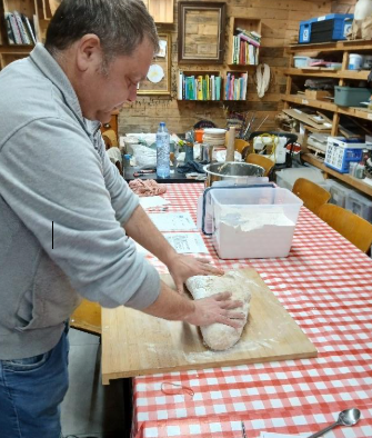 In de keuken die grenst aan het atelier wordt al een heerlijke soep gemaakt, die we later ook zullen proeven. Soms wordt hier ook brood, andere lekkernijen en honing gemaakt.